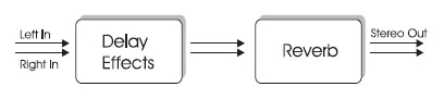 사실 리버브는 에코와 그 구현하는 원리가 동일하다. 차이가 있다면, 원음과 후속음의 시간 간격이 ‘분리되지 않은 소리’처럼 느껴질 만큼 짧다는 것과, 반사되는 경로가 매우 많다(즉, 수백 수천개의 서로 다른 에코가 존재한다)는 것 이다. 때문에 구현하는 난이도가 꽤 높았으며, DSP(Digital Signal Processor)가 보편화되기 전에는 커다란 철 박스에 스피커를 집어넣고, 그 안에서 울리는 소리를 마이크로 다시 받아서 사용하는 방식으로 구현하기도 했다. 보통은 공간계열 프로세서로 구분한다.