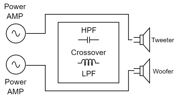 - 스피커 외부에 별도의 장비로 존재(Active)하거나, 스피커 내부에 회로(Passive)의 형태로 존재함